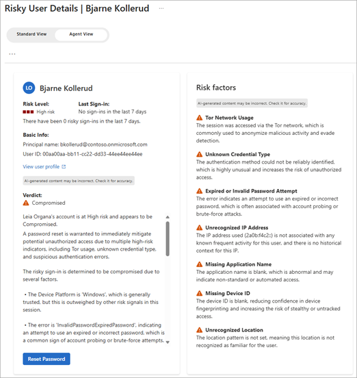 The Identity Risk Management Agent (Preview) in Entra ID Protection allows to analyse risky identities and suggests actions to remediate them. The Identity Risk Management Agent is currently available in Entra ID Premium P2 licenses but is still in Preview. Security compute units (SCUs) must also be available.